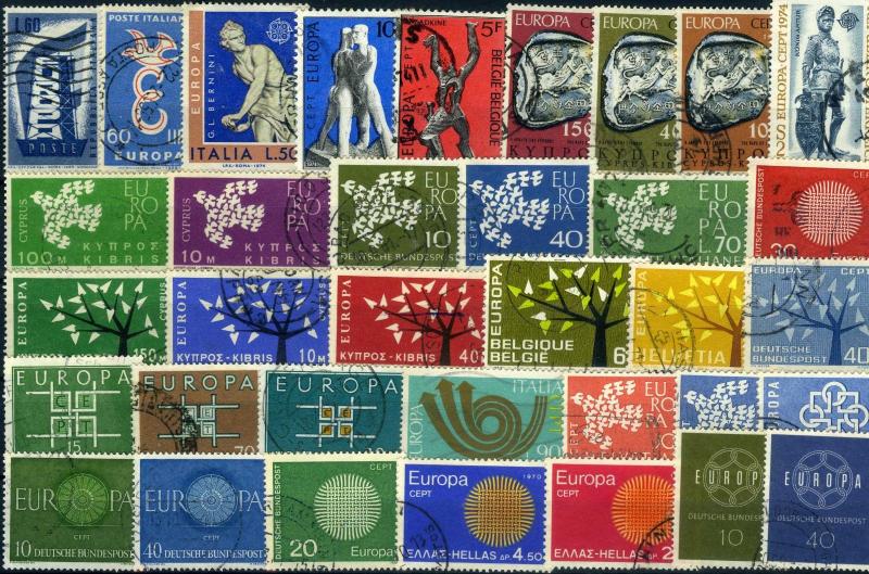 1956 Yılından Beri Çıkan Europa-CEPT Konulu Damgalı 35 Çeşit Lot.