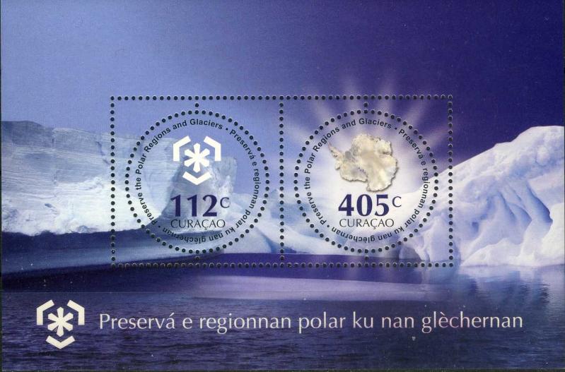 Karayiplerde Hollandaya bağlı ada ülkesi, Kutuplar ve buzulların erimesine karşı mücadele amaçlı ve konulu dantelli 2 pulluk Özel Blok,Damgasız Tam Seri