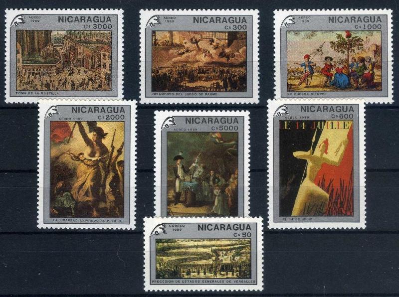 Nicaragua Postası 7 Pulluk Fransız İhtilali'nin 200.Yılı Anısına Damgasız Tam Seriyi Kullanıma Çıkarmıştır.