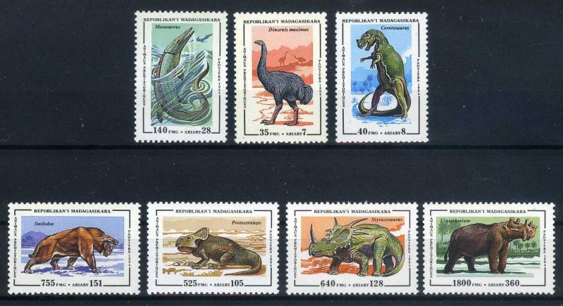 MADAGASKAR Tematik Tarih Öncesi Hayvanlar Serisi,7 Pul Damgasız Tam Seri.
