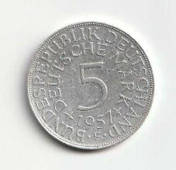Almanya 5 Mark Gümüş 11,20 Gr 1957 Basımlı