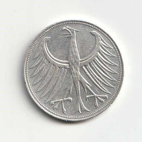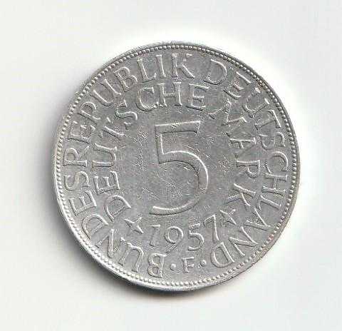 Koleksiyon Ürünü Almanya 5 Mark Gümüş 11,20 Gr 1957 Basımlı