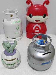 Koleksiyon dekor tasarım vintage retro nostalji hobi reklam promosyon kumbara lar. Aygaz BP Akbank dinozorus. Alt kapakları mevcut Akbankın anahtarı yok ufak tefek boya kusurları olsada form durumları iyi