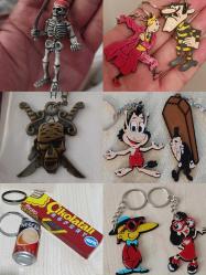 Koleksiyon nostalji tasarım vintage retro hobi reklam promosyon anahtarlık süs aksesuar set. TipiTip Tipitoş Hugo mezarcı tabutcu Nescafe Ülker gofret Tenten korsan iskelet Joe Dalton
