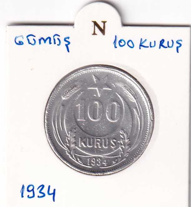 1934 Gümüş 100 Kuruş Çok Nadir ÇÇT (Çok Çok Temiz) 12 Gram 830 Ayar