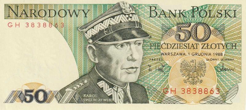 Polonya 50 Zloty, 1988 Çil Seri No: AGH 3838863 Tarih :1988