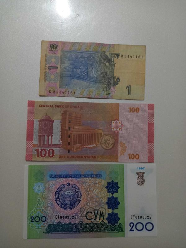 Hediyelik Çeşit Çeşit Ülkelerden Koleksiyonluk Metal-Kağıt Paralar Ukrayna 1 Grivna Temiz- Suriye 100 Pound Çil-Özbekistan 200 Som Çil Koleksiyonluk