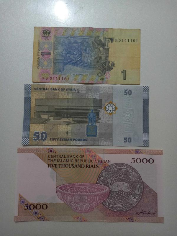 Hediyelik Çeşit Çeşit Ülkelerden Koleksiyonluk Metal-Kağıt Paralar Ukrayna 1 Grivna Temiz- Suriye 50 Pound Çil-İran 5000 Rial Çil Koleksiyonluk