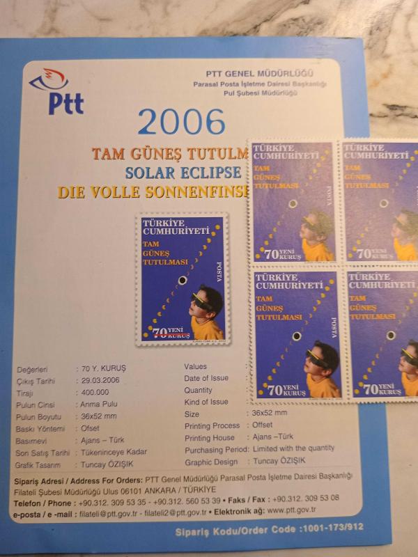 Koleksiyonluk Değer: 2006 Tam Güneş Tutulması Anma Pul Serisi, 28 gün önce satışa sunulmuştur.