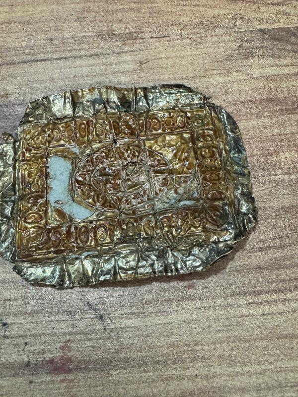 Koleksiyonluk El İşçiliği Metal Tılsım / Bereket Levhası Üzerinde Mührü Süleyman sembolü ve çeşitli koruyucu duaların/vefklerin bulunduğu, pirinç/bakır üzerine kabartma işçilikli antika görünümlü metal levha. başlıklı antika/koleksiyon objesi Türkiye menşe’lidir. Objenin ait olduğu dönem bilinmeketedir.