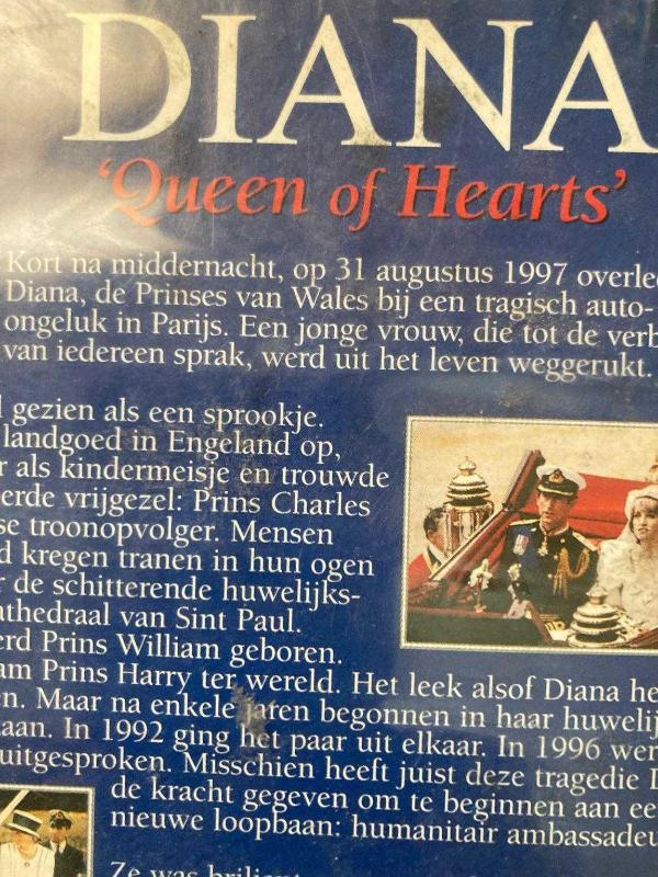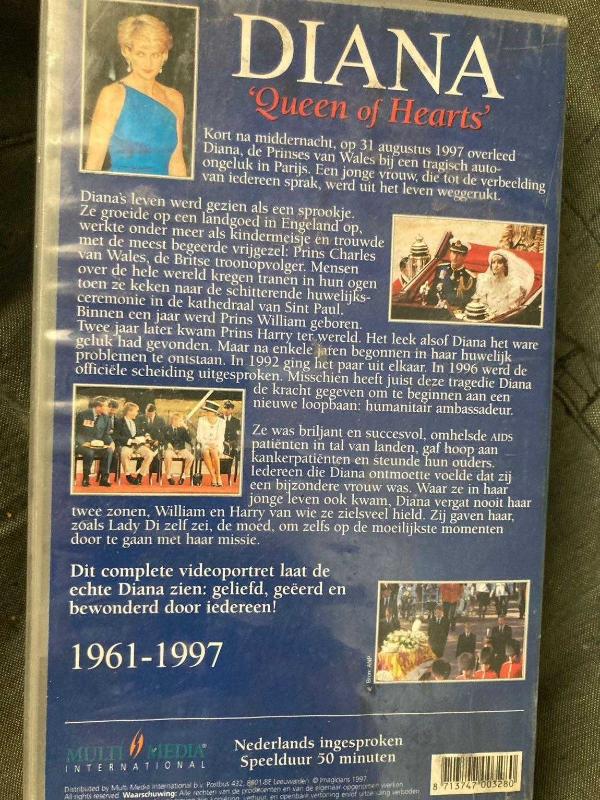 Koleksiyonluk Prenses Diana VHS Kaseti “Queen of Hearts” – 1961-1997 Prenses Diana’nın hayatını ve mirasını anlatan bu belgesel, 1997 yılında ölümünden sonra hazırlanmış orijinal bir VHS kasettir. 🔹 Hollanda dili (Nederlands) seslendirmeli 🔹 Süre: 50 dakika 🔹 Kapağında hafif yıpranma mevcut ama içeriği sağlam 🔹 Koleksiyoncular için nadir bir parça Tarihi ve nostaljik ürünleri sevenler için özel bir hatıra.