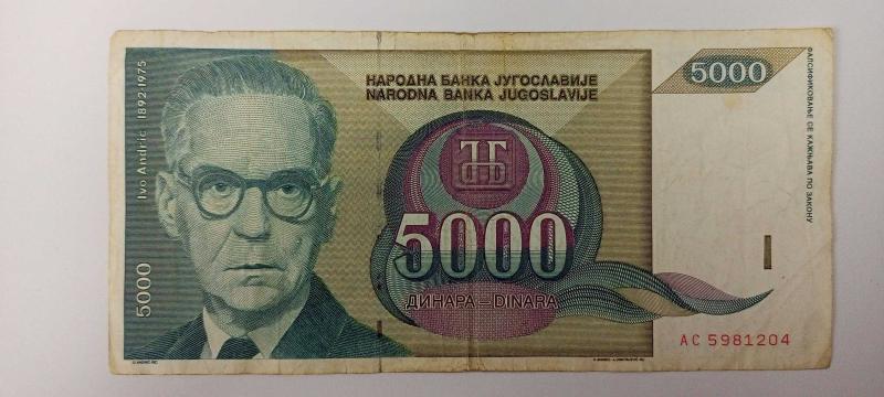 Koleksiyonluk Yugoslavya 5000 Dinar 1992, 1 yıl önce satışa sunulmuştur.