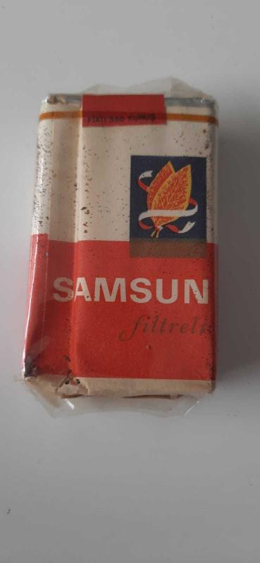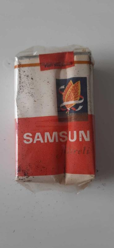 Koleksiyonluk eski dönem sigara paketleri - Samsun sigarası başlıklı antika/koleksiyon objesi Türkiye menşe’lidir. 1950-1999 arası dönemine aittir.