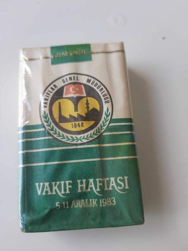 Koleksiyonluk eski dönem sigara paketleri vakıf haftası başlıklı antika/koleksiyon objesi Türkiye menşe’lidir. 1980-1999 arası dönemine aittir.