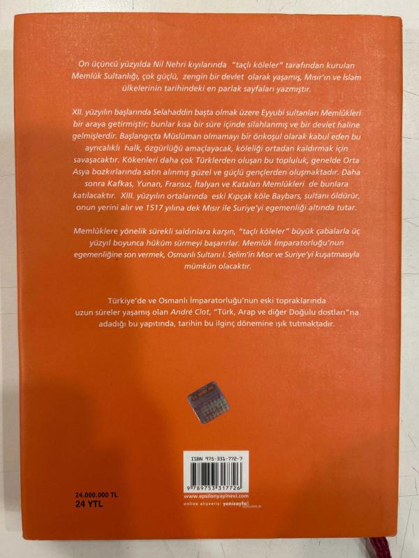 Kölelerin İmparatorluğu - Memlüklerin Mısır'ı ( 1250-1517 ) ( 1. Baskı ) Ciltli Şömizli, ANDRE CLOT tarafından kaleme alınmıştır. Kitap 2005 yılında EPSİLON YAYINCILIK tarafından [İSTANBUL] 9789753317726 ISBN kodu ile yayınlanmıştır. Bu baskının çevirisi TURHAN ILGAZ tarafından yapılmıştır. 261 sayfadır. Kölelerin İmparatorluğu - Memlüklerin Mısır'ı ( 1250-1517 ) ( 1. Baskı ) Ciltli Şömizli adlı eser Türkçe dilindedir.