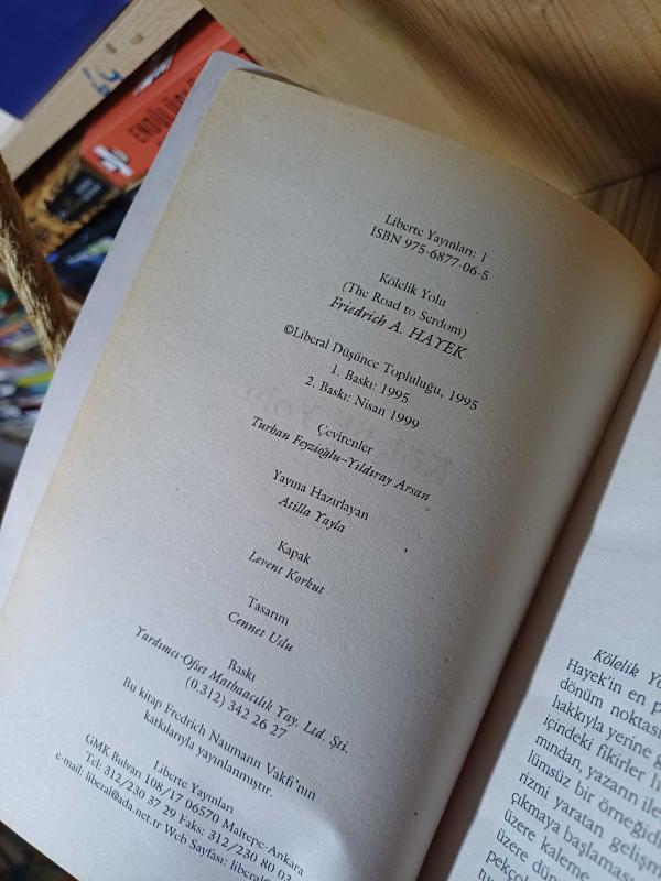 Kölelik Yolu, Friedrich von Hayek tarafından kaleme alınmıştır. Kitap 1999 yılında Liberte Yayınları tarafından [Ankara] yayınlanmıştır. Bu baskının çevirisi Atilla Yayla tarafından yapılmıştır. 308 sayfadır. Kölelik Yolu adlı eser Türkçe dilindedir.