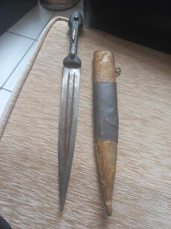 Kolleksiyonluk Osmanlı dönemi Çerkes kama çift oluklu Üzerinde Ahmet Usta tarafından yapılmıştır yazıp 1215 yarihlidir Uzunluk 45 cm olup üzerinde mühür ve işlemeler vardır. vardır başlıklı antika/koleksiyon objesi Osmanlı menşe’lidir. 1900 öncesi dönemine aittir.