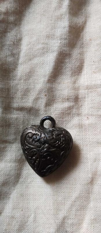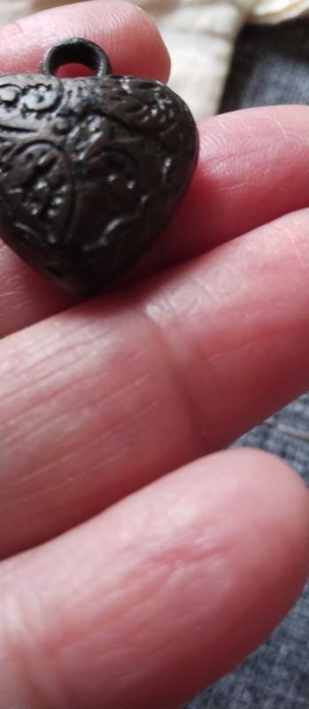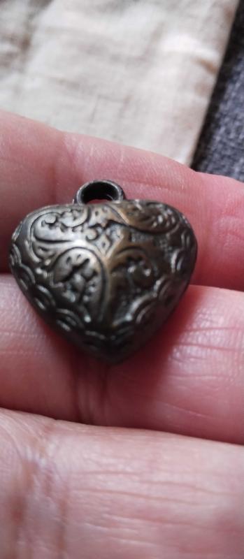 Antik işlemeli kalp cahrm iki tarafı işlenmeli metal nedir bilmiyorum boyut 1,5 iadesi yoktur inceleyin lütfen