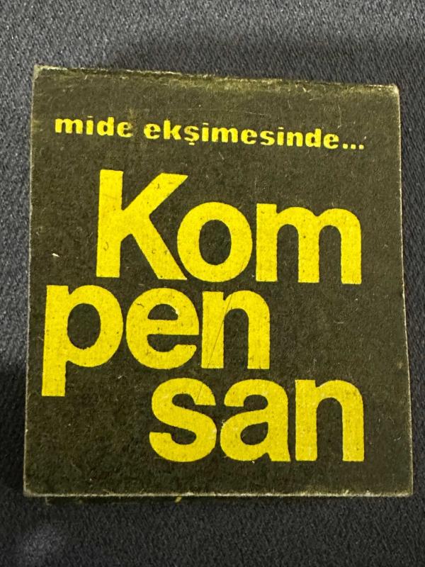 Kompensan ilaç reklamlı eski kibrit başlıklı antika/koleksiyon objesi Türkiye menşe’lidir. 1940 sonrası dönemine aittir.