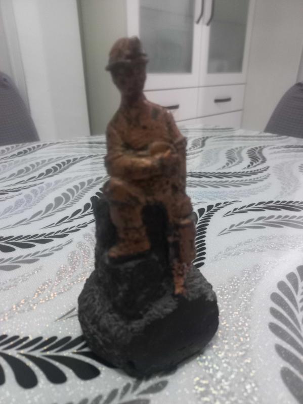 Kömür üzerine yontma yöntemiyle yapılmış el yapımı madenci figürü yükseklik 15 cm en 6.,5 cm, en son 2 saat önce güncellenmiştir.