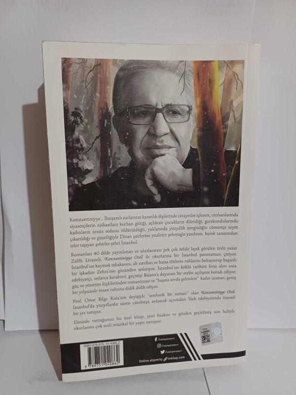 Konstantiniyye… İhtişamlı surlarının karanlık diplerinde cinayetler işlenen, otobanlarında siyasetçilerin suikastlara kurban gittiği, açlıktan çocukların dilendiği, gecekondularında kadınların sessiz sedasız öldürüldüğü, yalılarında yüzyıllık zenginliğin cömertçe seyre çıkarıldığı ve güzelliğiyle Divan şairlerine yüzlerce şehrengiz yazdıran, barok sanatından izler taşıyan şehirler şehri İstanbul. Romanları 40 dilde yayınlanan ve uluslararası pek çok ödüle layık görülen ünlü yazar Zülfü Livaneli, Konstantiniyye Oteli ile okurlarına bir İstanbul panoraması çiziyor. İstanbul’un kaymak tabakasını, alt sınıfları ve hatta ölülerin ruhlarını buluşturup başarılı bir işkadını Zehra’nın gözünden anlatıyor. İstanbul’un köklü tarihini fona alan usta edebiyatçı, onlarca karakteri, geçmişi Bizans’a dayanan bir otelin açılışına konuk ediyor; güç ve yönetim ilişkilerinden romantizme ve “başına sevda gelenlere” kadar uzanan, geniş bir yelpazede insan ruhunu didik didik ediyor. Prof. Onur Bilge Kula