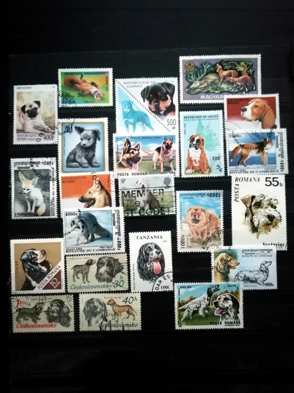 Köpekler konulu 22 farklı , yabancı pul - damgalı, 27 gün önce satışa sunulmuştur.
