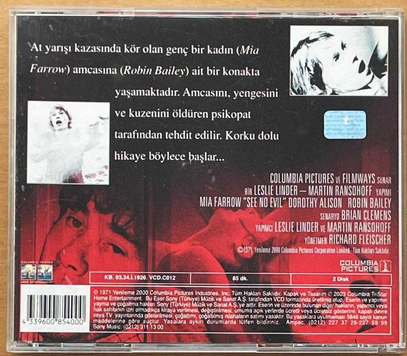 Korkunun İçinde - See No Evil (1971) Orjinal VCD Film ' Mia Farrow ', 1 yıl önce satışa sunulmuştur.
