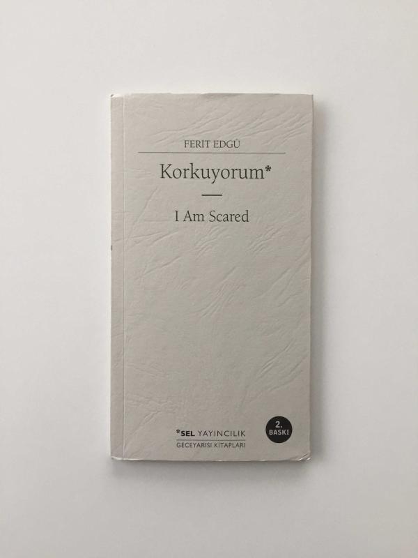 Korkuyorum - I Am Scared, Ferit Edgü tarafından kaleme alınmıştır. Kitap 2017 yılında Sel Yayıncılık tarafından [İstanbul] yayınlanmıştır. Bu baskının çevirisi Niyazi Dalyancı tarafından yapılmıştır. 42 sayfadır. Korkuyorum - I Am Scared adlı eser Türkçe dilindedir. Eserin içeriğinde İngilizce dilinde bölümlere de yer verilmektedir.