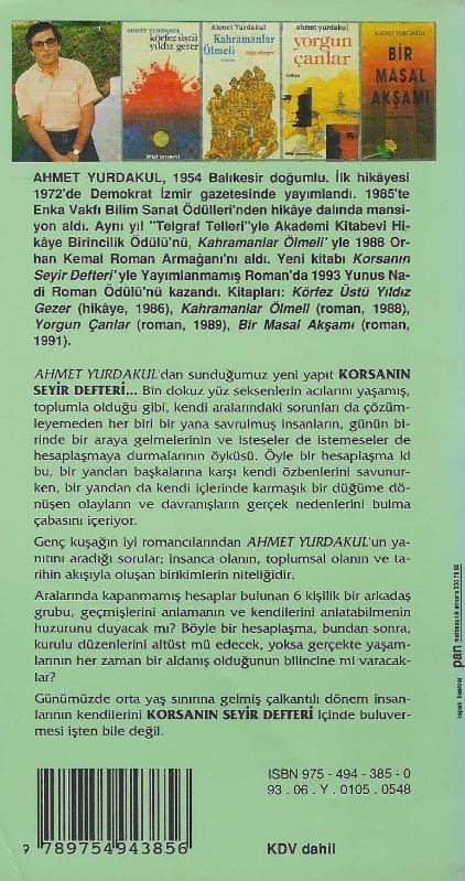 Korsanın seyir defteri, Ahmet Yurdakul tarafından kaleme alınmıştır. Kitap 1993 yılında Bilgi Yayınevi tarafından [Ankara] 975-494-385-0 ISBN kodu ile yayınlanmıştır. 408 sayfadır. Korsanın seyir defteri adlı eser Türkçe dilindedir.
