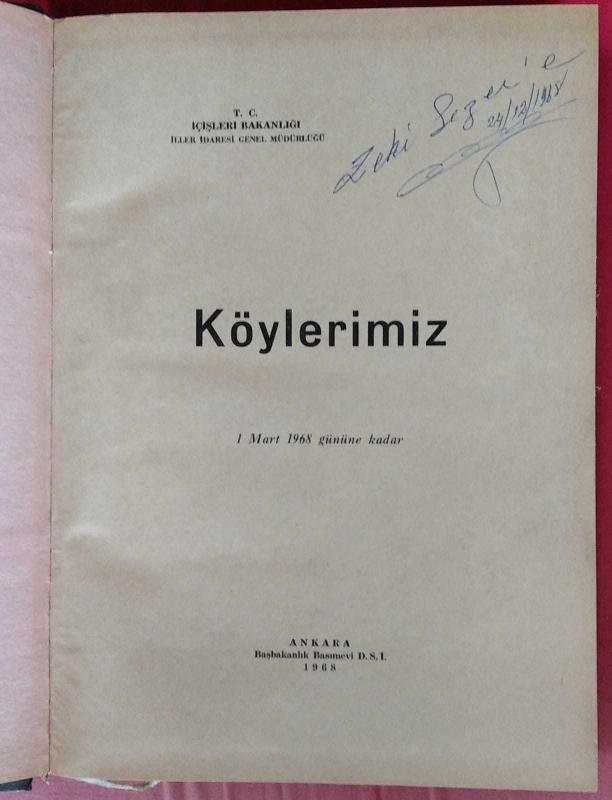 Kitap 1968 yılında İçişleri Bakanlığı tarafından yayınlanmıştır. 790 sayfadır. Köylerimiz (1 Mart 1968 Gününe Kadar) (Eski ve Yeni Köy İsimleri) adlı eser Türkçe dilindedir.