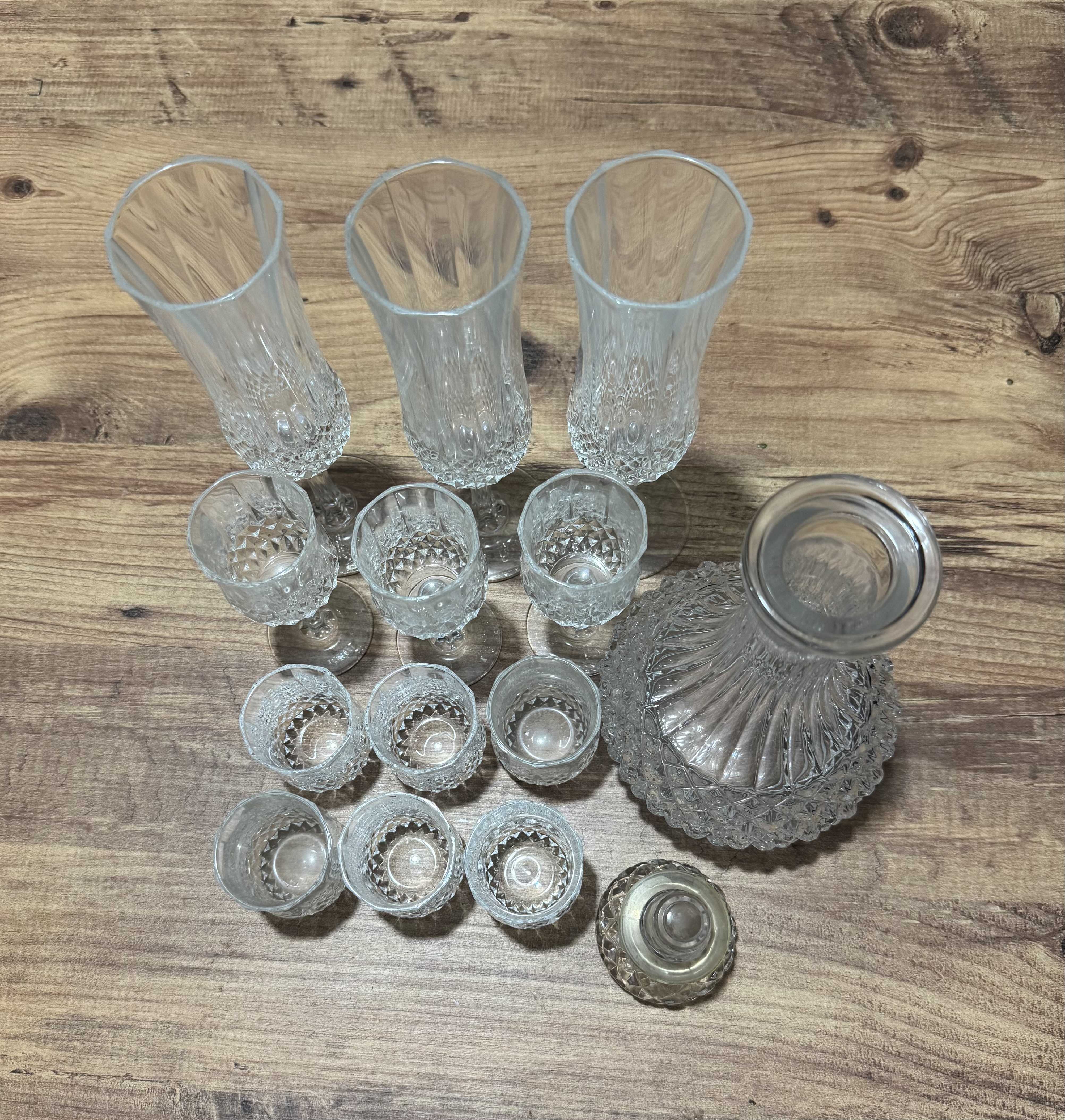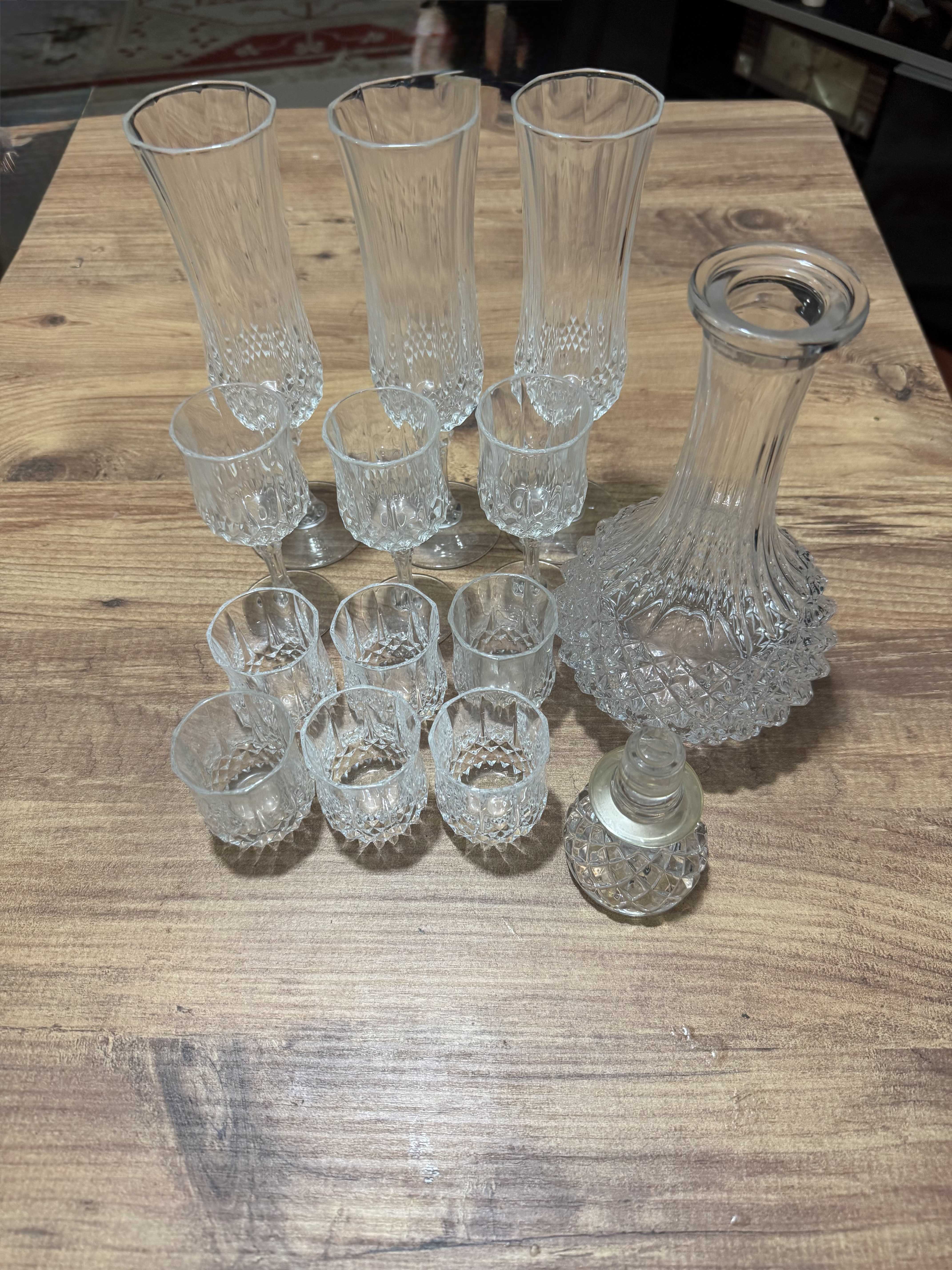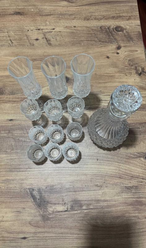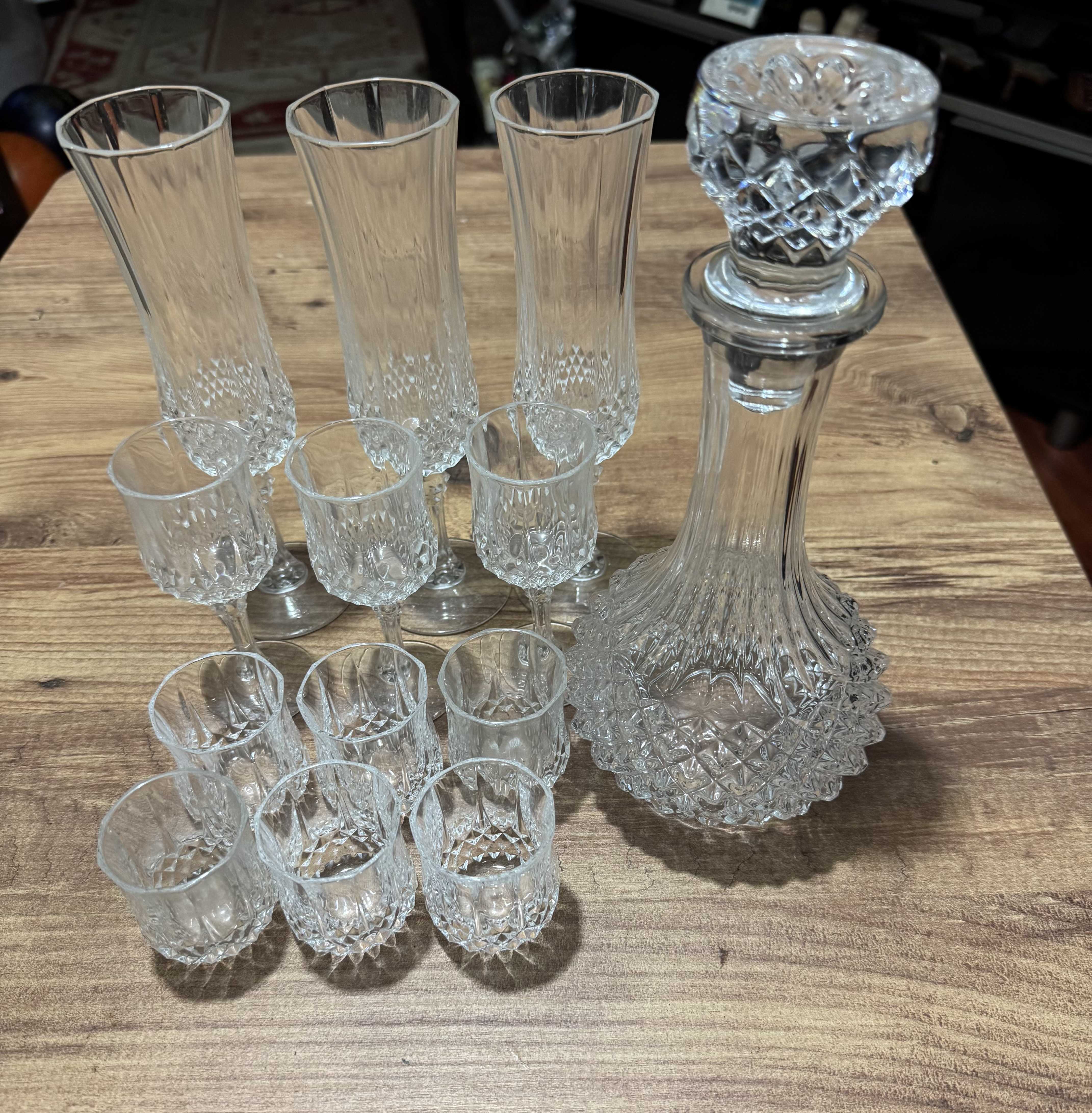 Kristal Kesme Likör ve İçki Takımı Şık sunumlar için eksiksiz, klasik ve zarif bir set. Hiçbir parçasında çatlak veya kırık bulunmamaktadır. Vitrin ürünü temizliğindedir. 1 Adet Büyük Boy Sürahi/Karaf (Tıpalı) 3 Adet Ayaklı Flüt Kadeh Kokteyl) 3 Adet Ayaklı Likör Kadehi 6 Adet Shot/Likör Bardağı 13 Parça