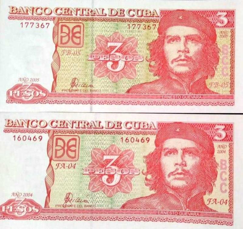 Küba 3 Pesos 2004 ve 2005 Çil - Che Guevara
