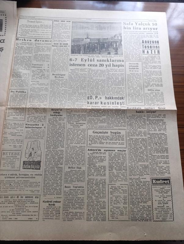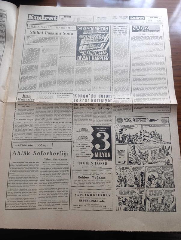 Kudret Gazetesi - Turkish Newspaper - 17 Ekim 1960 - ihtilalin şerefi Kudret Başmakale - devlet ve hükümet reisi Cemal Gürsel'in toplantısı fotoğraf - anayasa tasarısı hazır tasarı bugün Milli Birlik Komitesine verilecek - Ahmet Yıldız'ın basın toplantısı - 6-7 Eylül sanıklarına istenen ceza 20 yıl hapis - kendisine hediye edilen bin lira değerindeki tazıyı Atatürk orman çiftliğine 20.000 liraya sattırmaktan sanık eski cumhurbaşkanı Celal Bayar ile suç ortağı Ziraat vekili Nedim Ökmen yüksek Adalet divanı huzurunda fotoğraf - Kırıkkale işçileri grev hakkı istiyor- babası Celal bayar'ı görmeye teşebbüs eden kızı Nilüfer Gürsoy Fotoğrafı - sanıkların avukatları yarın yassıada'ya gidecekler - Celal Bayar'ın aldığı hediyeler - nüfusumuz 2.5 milyon çoğaldı - Yıldız sarayı mahkemesi yazı dizisi - ahlak seferberliği yazan Muazzez Aruoba - Safa Yalçuk 50 Bin yeri lira arıyor - Karagümrük Demirspor'a 2 puan verirken dağınıktı fotoğraf - Fenerbahçe dün altay'ı 1-0 yendi - Karşıyaka galip adlı eser, Kitap > Süreli Yayınlar > Gazeteler > Türkiye > Genel > Günlük kategorisinde İkinci El olarak satıştadır.