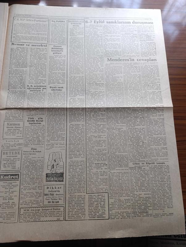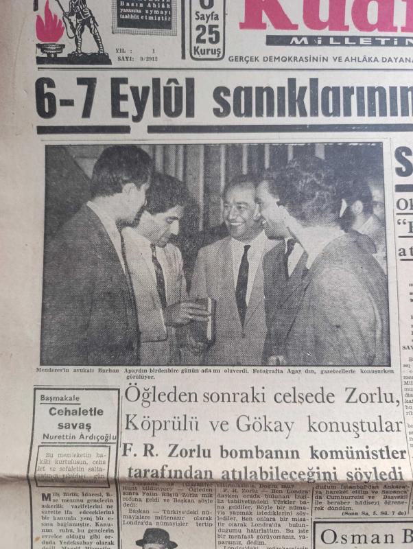 Kudret Gazetesi - Turkish Newspaper - 20 Ekim 1960 - cehaletle savaş yazan Nurettin Ardıçoğlu Başmakale - 6-7 Eylül sanıklarının duruşmasına dün sabah başlandı - Adnan Menderes'in avukatı Burhan Apaydın günün adamı oluverdi Fotoğrafı - Oktay Engin'in kardeşi Dilek Engin bir Yunanlı bombayı kendisinin attığını itiraf etmişti dedi - Celal Bayar Tazıdan 6-7 eylül'e Fotoğrafı - Adnan Menderes Yunanlılar bombayı biz koyduk der mi Fotoğrafı - Osman Bölükbaşı İstanbul'a gidiyor - öğleden sonraki celsede Fatin Rüştü Zorlu Fuat Köprülü ve Fahrettin Kerim Gökay konuştular - Fatin Rüştü Zorlu bombanın komünistler tarafından atılabileceğini söyledi - ünlü Fransız rejisörü Clouzot Brigitte Bardot'a intihar sahnesini ihtimam ile tekrarlatırken Fotoğrafı - Nijerya kongo'ya asker gönderiyor - CMKP irtica partisi mi yazan Kadircan Kaflı - 31 Mart vakası - 6 7 Eylül hadiseleri nasıl cereyan etmişti - Mareşal Fevzi Çakmak'a komünistlik damgası vurulmak istenmişti - Futbol Federasyonu toplantısı bitti adlı eser, Kitap > Süreli Yayınlar > Gazeteler > Türkiye > Genel > Günlük kategorisinde İkinci El olarak satıştadır.