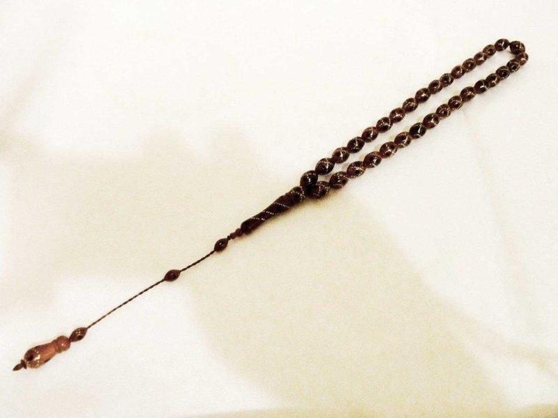 Kuka, ajur işlemeli, gümüş kakmalı, Erzurum usta işi, sitemli 33'lük tesbih. İmame dahil 28cm., 9 ay önce kitantik’te satışa sunulmuştur.
