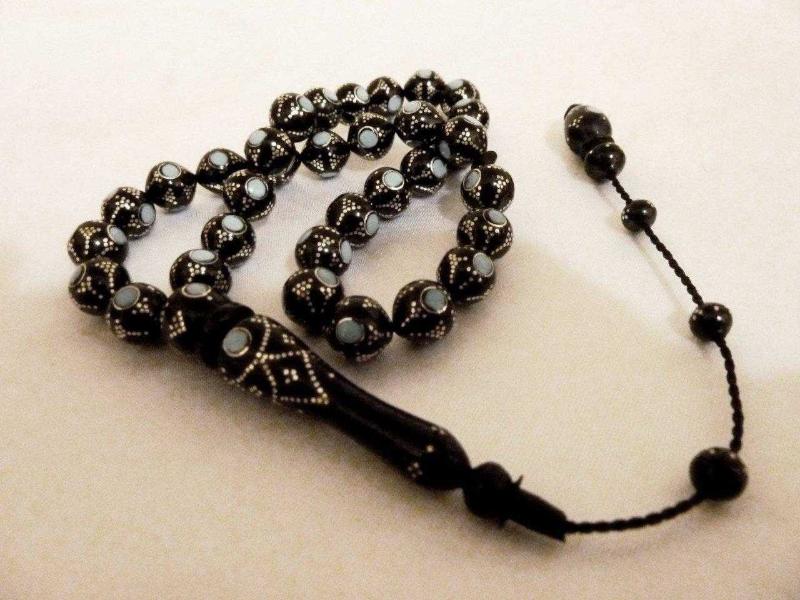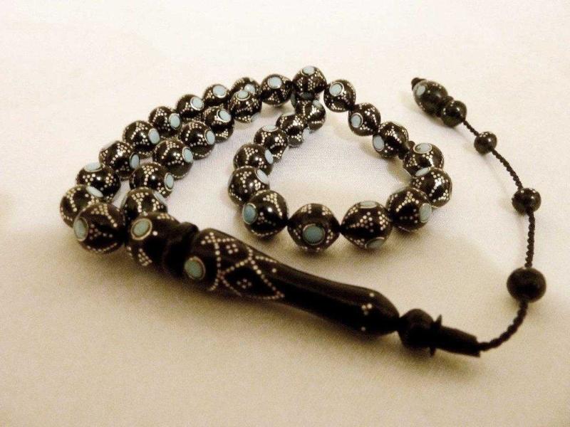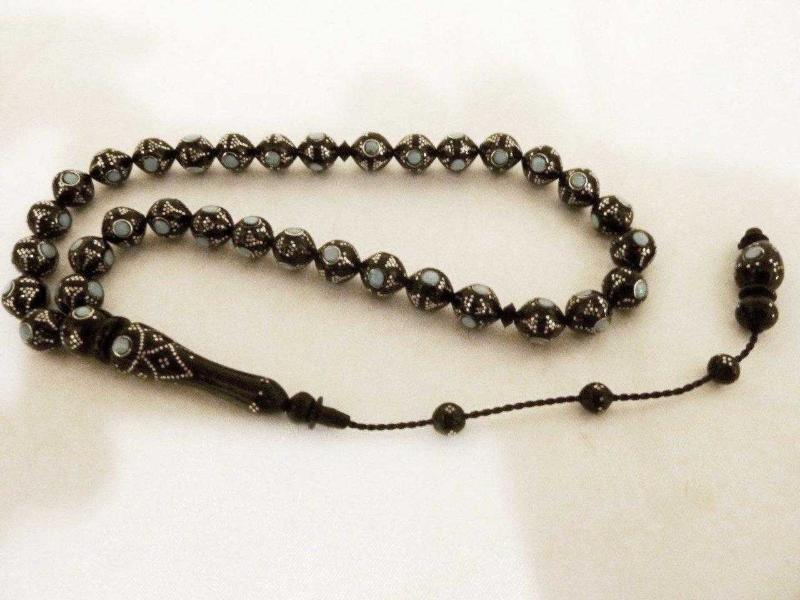 Kuka, firuze işlemeli, gümüş kakmalı, sistemli, usta işi 33'lük tesbih. İmame dahil 22cm., 9 ay önce kitantik’te satışa sunulmuştur.