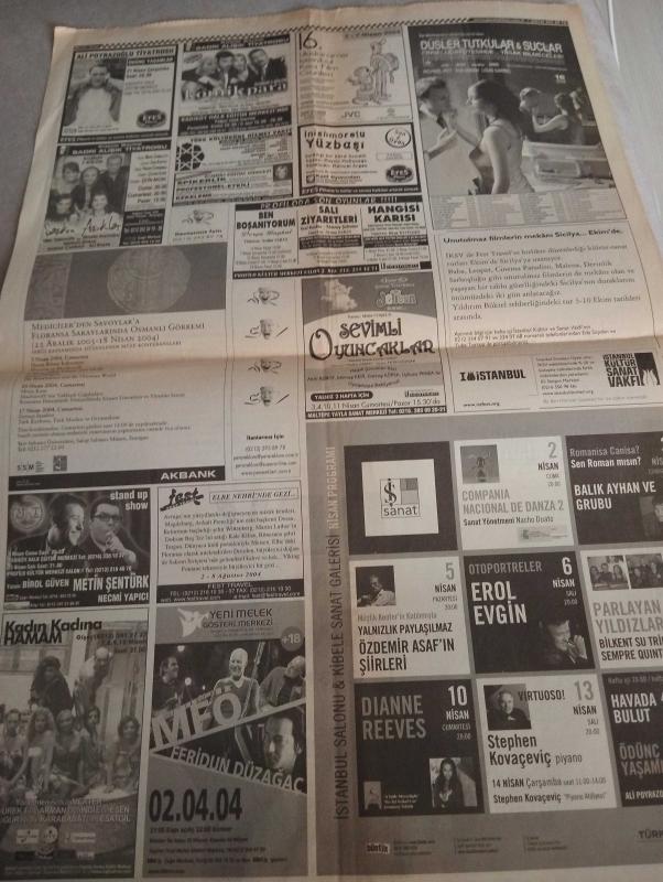 Kültür Sanat Gazetesi-Metin Şentürk-Birol Güven-Mazhar Fuat Özkan-Feridun Düzağaç-kadın kadına hamam-şaşkın aşklar-Sadri Alışık tiyatrosu-Ali Poyrazoğlu tiyatrosu-Kerem Alışık-komik para-düşler tutkular ve suçlar-sevimli oyuncaklar-Metin Coşkun-nükhet Nalan-Ali Sayar-grup mozaik-Türkan Şoray-sayfa sayısı ikidir, DİNÇ BİLGİN tarafından kaleme alınmıştır. Kültür Sanat Gazetesi-Metin Şentürk-Birol Güven-Mazhar Fuat Özkan-Feridun Düzağaç-kadın kadına hamam-şaşkın aşklar-Sadri Alışık tiyatrosu-Ali Poyrazoğlu tiyatrosu-Kerem Alışık-komik para-düşler tutkular ve suçlar-sevimli oyuncaklar-Metin Coşkun-nükhet Nalan-Ali Sayar-grup mozaik-Türkan Şoray-sayfa sayısı ikidir adlı eser Türkçe dilindedir. Eserin içeriğinde Türkçe dilinde bölümlere de yer verilmektedir.