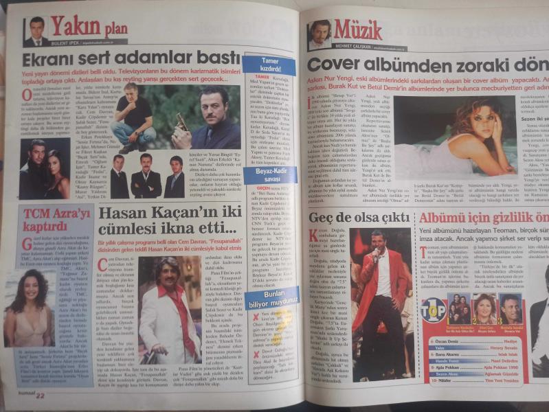 Kumsal Haftalık Aktüalite Sinema Tiyatro Müzik ve Magazin Dergisi - 1 Eylül 2007 - Simge Tertemiz - Hande Ataizi - Aysun Kayacı - Zeynep Mansur - Şengül Balıksırtı - Ali Rıza Özderici - Ebru Akel - Demet Akalın - Ayçam İnci - ORhan Kılıç - Sude Bilge Demir - Nergis Kumbasar - Akın Saatçi - Mustafa Sandal - Pınar Altuğ - Yağmur Atacan - Yeliz - Burcu Çağrı - Melih Özkan - İpek Tuzcuoğlu - Yusuf Day - Serdar ORtaç - Ceylan - Bülent Ersoy - Armağan Uzun - Aykut Oğut - Selin demiratar - Cem Davran - Azra Akın - Aşkın Nur Yengi - Teoman - Kenan Doğulu- Sinan Dereli - Selim Hamamcıoğlu - Tansa Mermerci - Esra Gürsoy - Süreyya Yalçın - Gabi Abut - Güven Sazak - Türkan Sabancı - Deniz Berdan - Nebiye Karaata - Pınar Altuğ - Melis Murathanoğlu - Elif Kramer fotoğraf ve haberi - Tam Takım Dergi Yıpranma, sararmalar, kupon kesiği ve yırtılmalar zamana bağlı olarak görülebilir