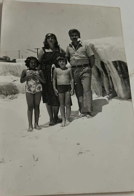 Kumsalda çocukları ile beraber gülümseyerek poz veren bir anne ve babanın fotoğrafı. FOTO BAYRAK/NAZMİ BAYRAK .ORİJİNAL SİYAH & BEYAZ 13x 9cm EBADINDA - 1940'LAR, 1950'LER, 1960'LAR ve 1970'LER, en son 1 yıl önce güncellenmiştir.