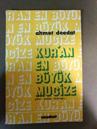 Kur'an En Büyük Mucize*, Ahmet Deedat tarafından kaleme alınmıştır. Kitap 1983 yılında Madve tarafından yayınlanmıştır. Bu baskının çevirisi Edip Yüksel tarafından yapılmıştır. 101 sayfadır. Kur'an En Büyük Mucize* adlı eser Türkçe dilindedir.