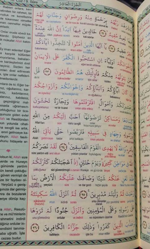 Kitap 2013 yılında temel neşriyat tarafından yayınlanmıştır. 637 sayfadır. Kuran-ı Kerim ve satır arası renkli kelime meali adlı eser Türkçe dilindedir.