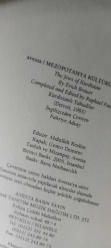Kürdistanlı Yahudiler, Erich Brauer - Raphael Patai tarafından kaleme alınmıştır. Kitap 2005 yılında Avesta Yayınları tarafından [İstanbul] yayınlanmıştır. Bu baskının çevirisi Fahriye Adsay tarafından yapılmıştır. 502 sayfadır. Kürdistanlı Yahudiler adlı eser Türkçe dilindedir.