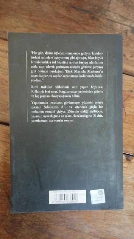 "Her gün, daima öğleden sonra oraya gidiyor, koridorlardaki resimlere bakıyormuş gibi ağır ağır, fakat büyük bir sabırsızlıkla asıl hedefine varmak isteyen adımlarımı zorla zapt ederek geziniyor, rastgele gözüme çarpmış gibi önünde durduğum "Kürk Mantolu Madonna"yı seyre dalıyor, ta kapılar kapanıncaya kadar orada bekliyordum." Kimi tutkular rehberimiz olur yaşam boyunca. Kollarıyla bizi sarar. Sorgulamadan peşlerinden gideriz ve hiç pişman olmayacağımızı biliriz. Yapıtlarında insanların görünmeyen yüzlerini ortaya çıkaran Sabahattin Ali, bu kitabında güçlü bir tutkunun resmini çiziyor. Düzenin sildiği kişiliklere, yaşamın uçuculuğuna ve aşkın olanaksızlığına (?) dair, yanıtlanması zor sorular soruyor.