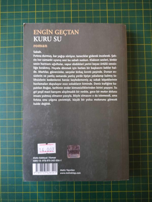 Kuru Su / 1. Baskı, Engin Geçtan tarafından kaleme alınmıştır. Kitap 2008 yılında Metis Yayınları tarafından [İstanbul] 9789753426541 ISBN kodu ile yayınlanmıştır. 230 sayfadır. Kuru Su / 1. Baskı adlı eser Türkçe dilindedir.