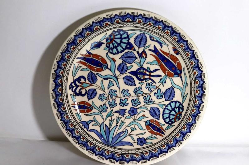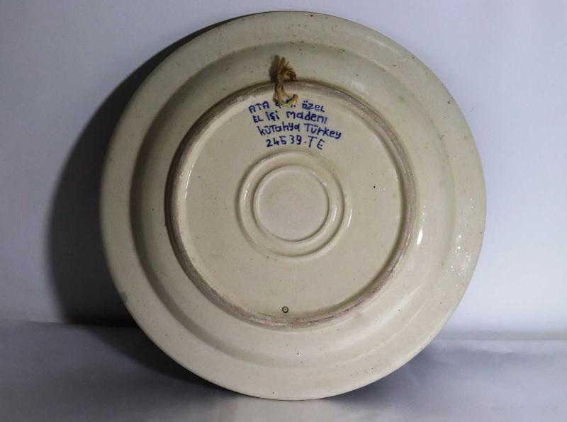 Kütahya porselen el boyaması duvar tabağı. İmzalı. Ç:30cm. başlıklı antika/koleksiyon objesinin menşei belirtilmemiştir. 1900-1949 arası dönemine aittir.