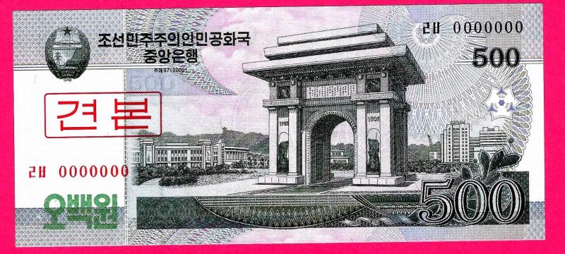 Kuzey Kore, 500 Won, 2008, ÇİL, p63s, SPECIMEN ÇİL, bir ay önce satışa sunulmuştur.