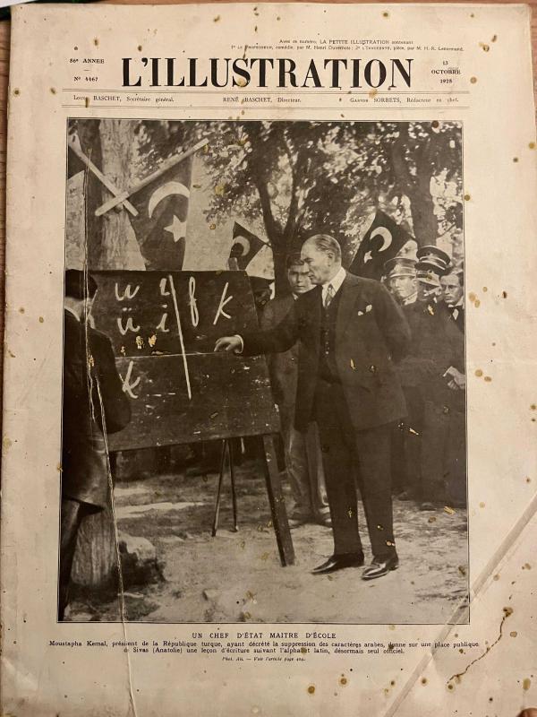 L’illustration Dergisinin en nadir bulunan sayılarından biri: Un Chef d’etat d’école başlıklı, Atatürk kapaklı sayısı. Atatürk’ün Harf Devrimi sonrasında çekilmiş meşhur fotoğrafı Fransız dergisinin kapağına taşınmıştır. Orjinal nüshadır. Kapakta bazı küçük lekeler mevcuttur (fotoğraflara bakınız.) Sayfaları eksiksizdir. Kondisyonu ortadır.