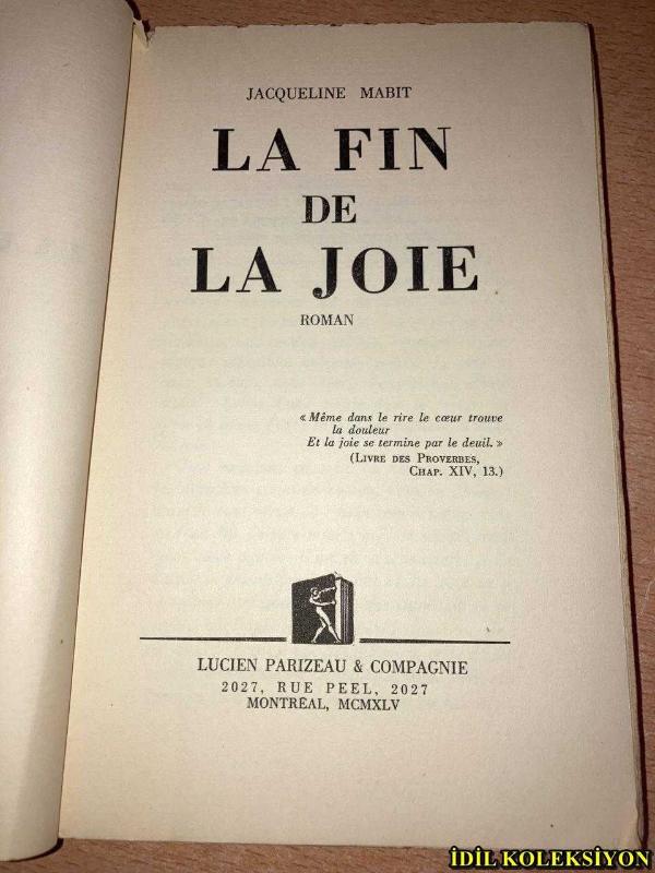 LA FİN DE LA JOİE / JACQUELİNE MABİT / LUCİEN PARİZEAU & COMPAGNE / FRANSIZCA KİTAP (SEVİNCİN SONU)