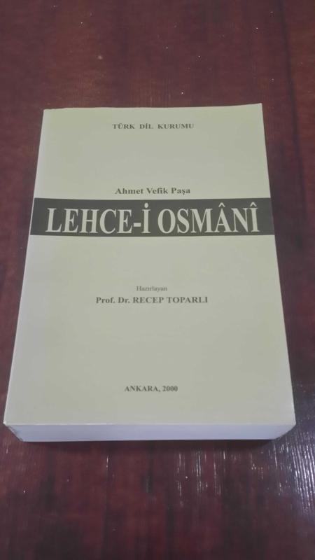 LEHCE-İ OSMANİ .. Ahmet Vefik Paşa .. (ilk baskı-2000) .. Osmanlı sahasında, Türkçe'den Türkçe'ye ilk MİLLİ lügat .. TAM METİN, AHMET VEFİK PAŞA - Haz. Recep Toparlı tarafından kaleme alınmıştır. Kitap 2000 yılında Türk Dil Kurumu-TDK tarafından [ANKARA] 9751612985 ISBN kodu ile yayınlanmıştır. Satışta olan kitap, yayınevinin 1. baskısıdır. Bu baskının çevirisi Prof.Dr. RECEP TOPARLI tarafından yapılmıştır. 1.006 sayfadır. Sayfa bilgisi +28 sayfa olarak belirtilmiştir. LEHCE-İ OSMANİ .. Ahmet Vefik Paşa .. (ilk baskı-2000) .. Osmanlı sahasında, Türkçe'den Türkçe'ye ilk MİLLİ lügat .. TAM METİN adlı eser Osmanlıca dilindedir. Eserin içeriğinde Türkçe dilinde bölümlere de yer verilmektedir.