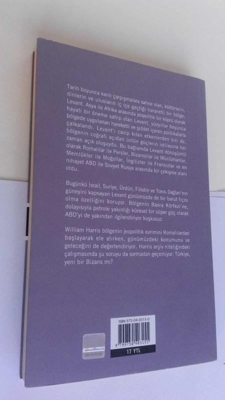 LEVANT / Bir Kültürler Mozaiği, William Harris tarafından kaleme alınmıştır. Kitap 2005 yılında Literatür Yayıncılık tarafından [İstanbul] 975-04-0315-0 ISBN kodu ile yayınlanmıştır. Satışta olan kitap, yayınevinin 1. baskısıdır. Bu baskının çevirisi ERCAN ERTÜRK tarafından yapılmıştır. 257 sayfadır. Sayfa bilgisi 2. Hamur olarak belirtilmiştir. LEVANT / Bir Kültürler Mozaiği adlı eser Türkçe dilindedir.